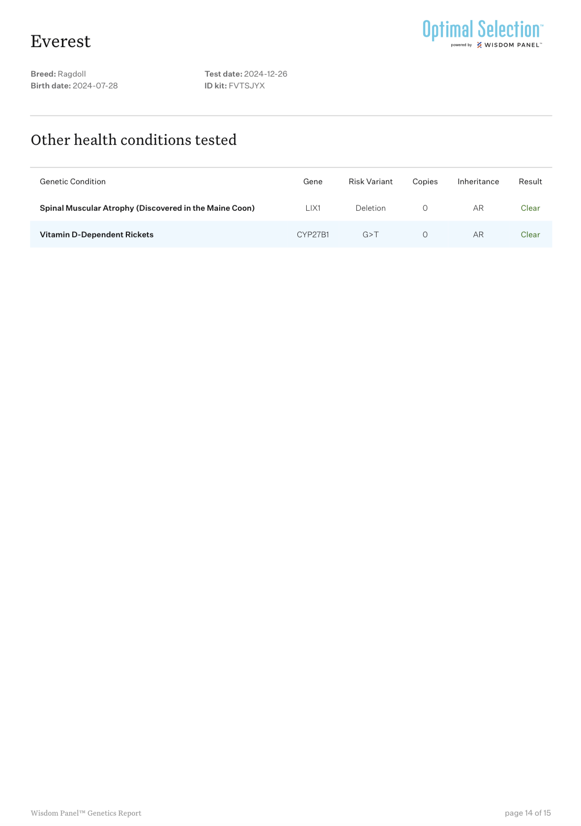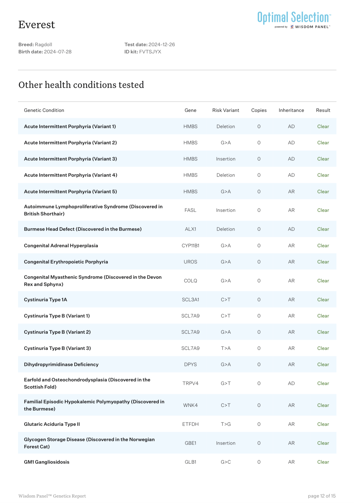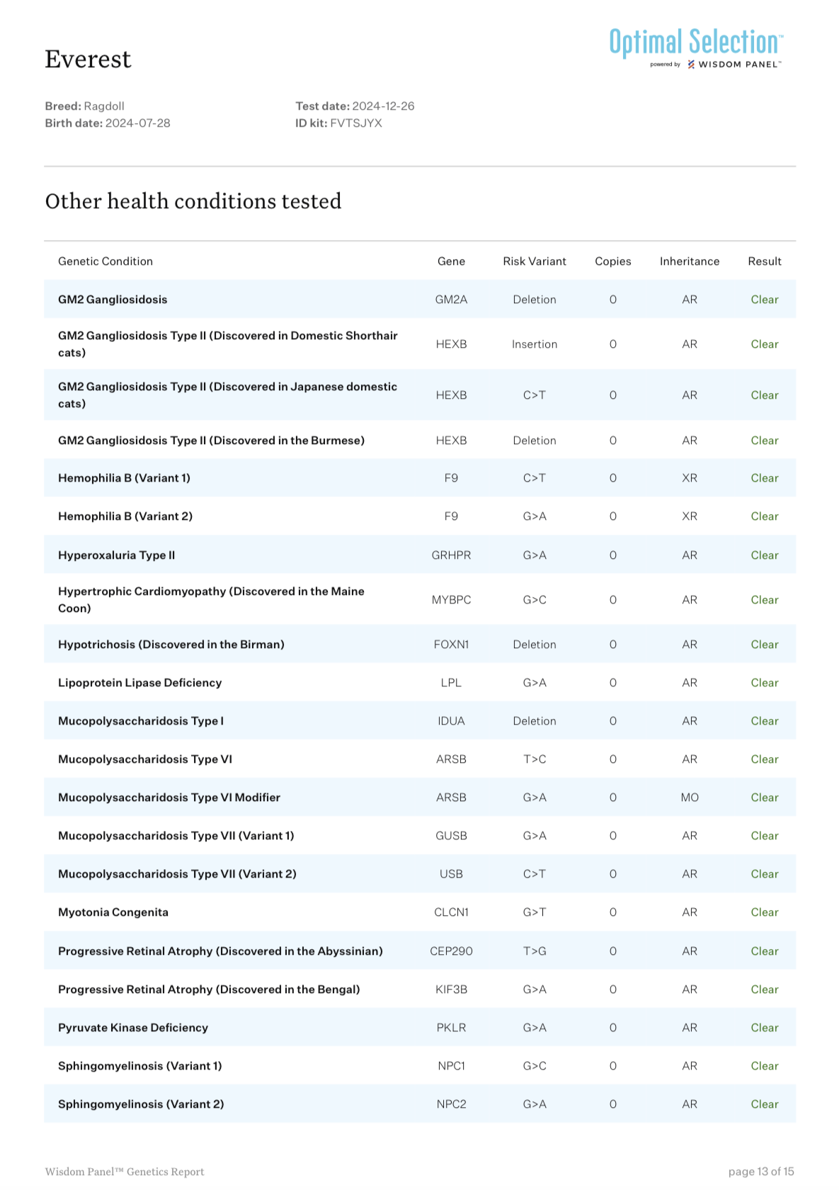 Everest has tested negative for over 40 genetic conditions, including HCM + PKD.