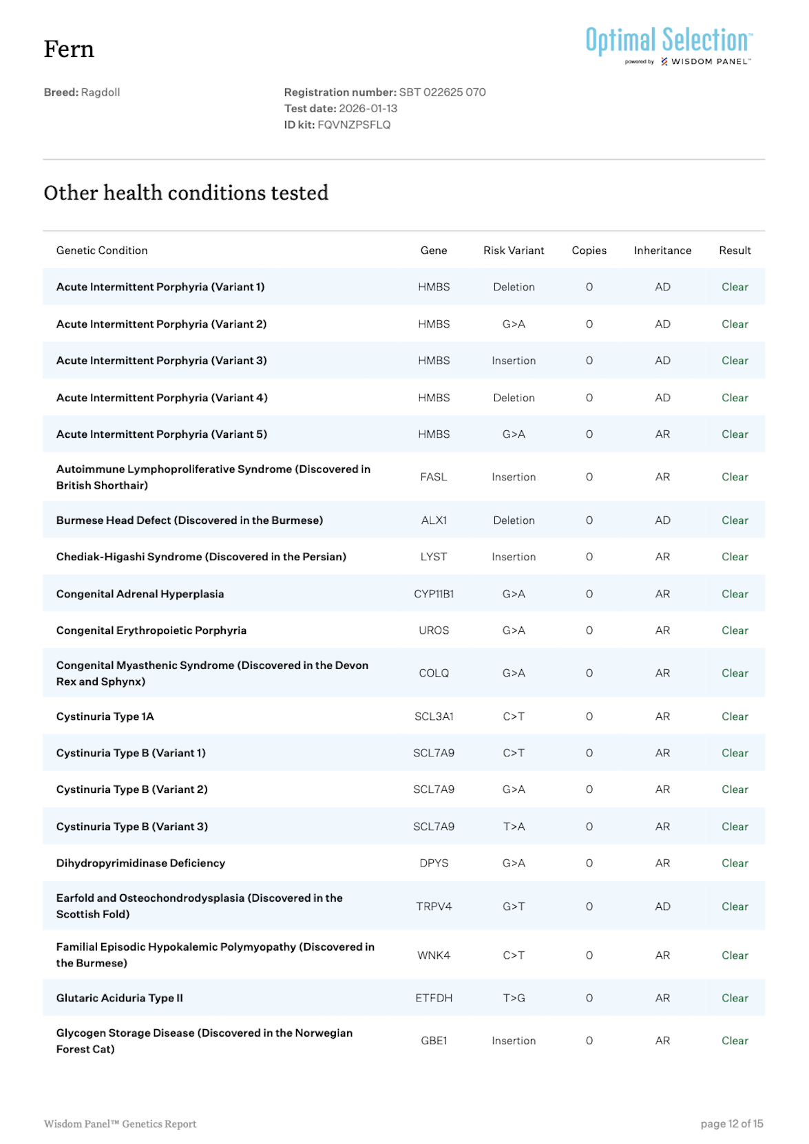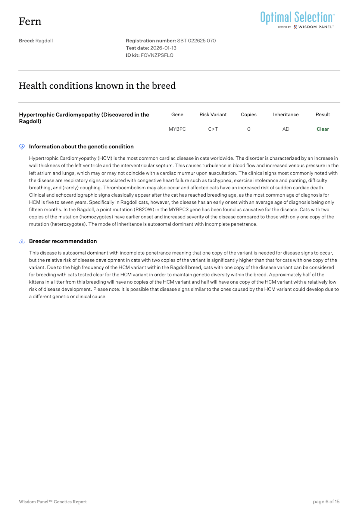 Fern has tested negative for over 40 genetic conditions, including HCM + PKD..