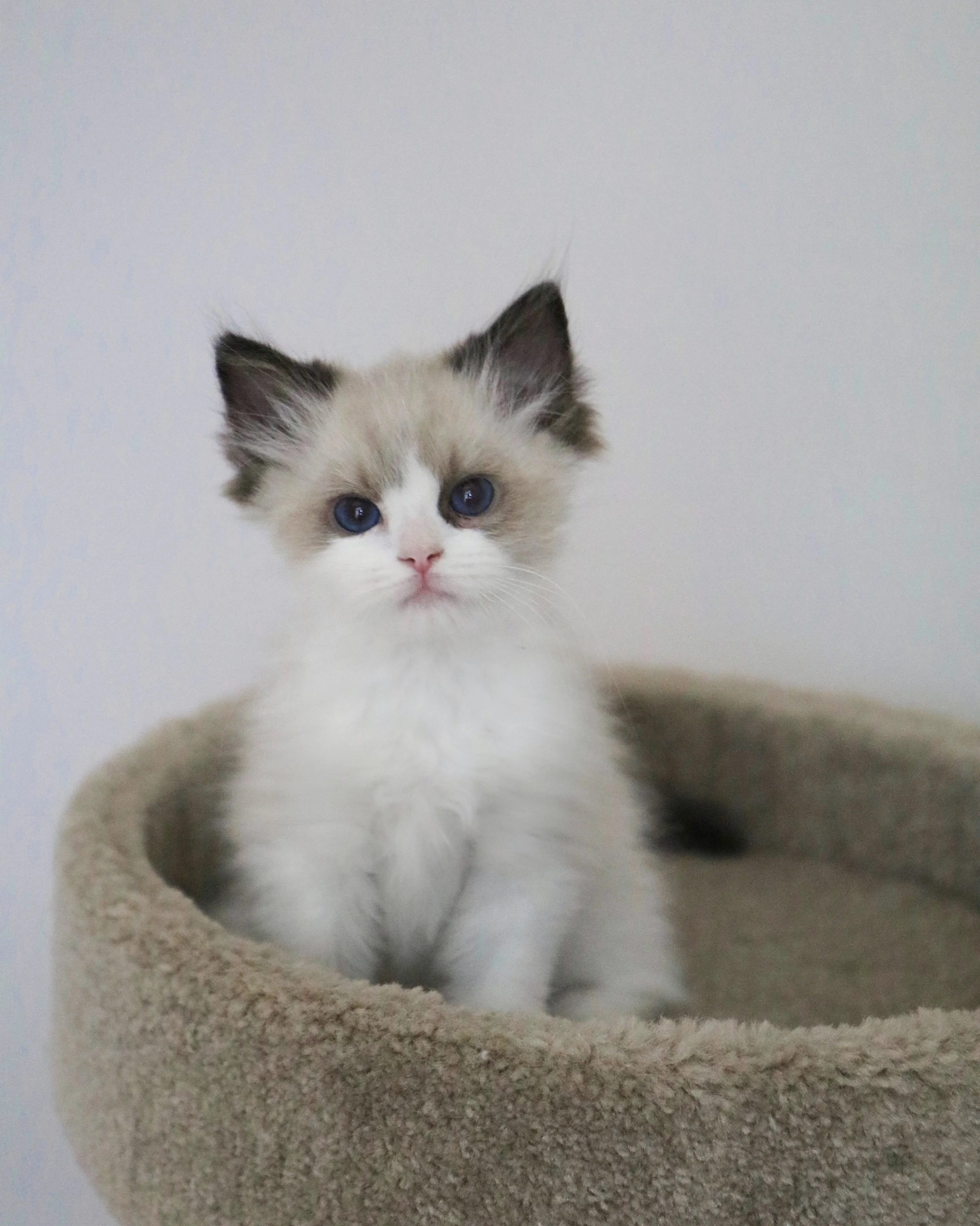 Physical Attributes: Jack-o’-Lantern is a beautiful seal bicolor boy with striking markings that truly make him one of a kind. His mask is slightly asymmetrical, giving him an extra touch of individuality and charm! He has a sweet, captivating face and an expression that melts my heart every time I look at him. His overall structure is balanced and harmonious, with nicely set ears and that classic Ragdoll look. Jack is truly one of a kind and has the most sweet, tender look. He is a very handsome and lovely boy!!