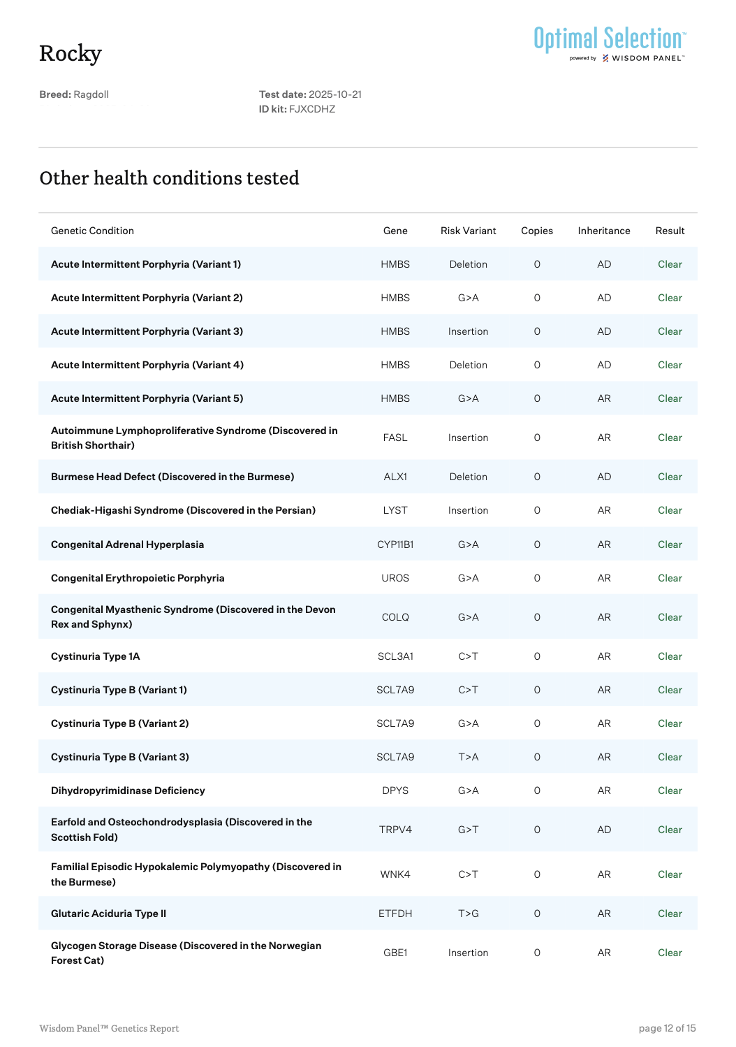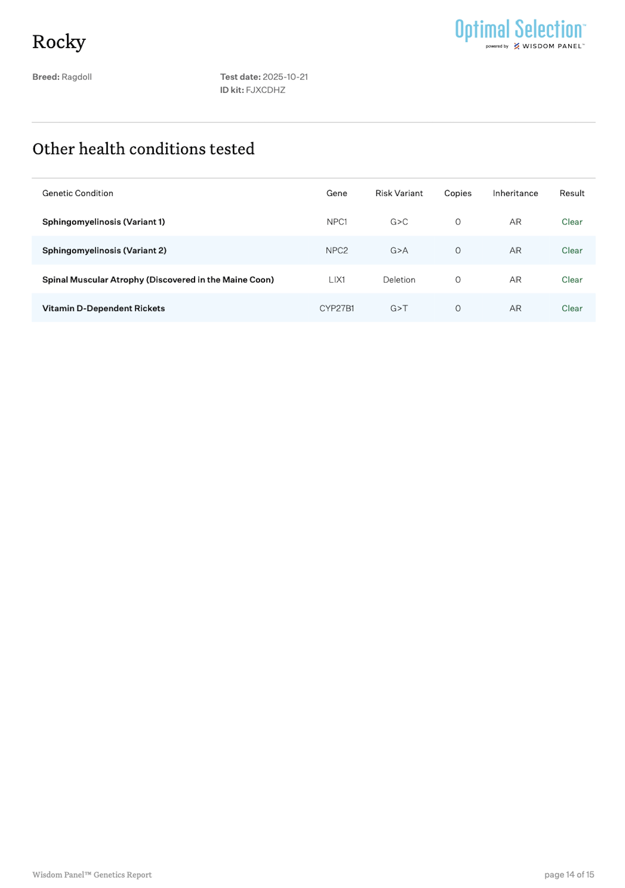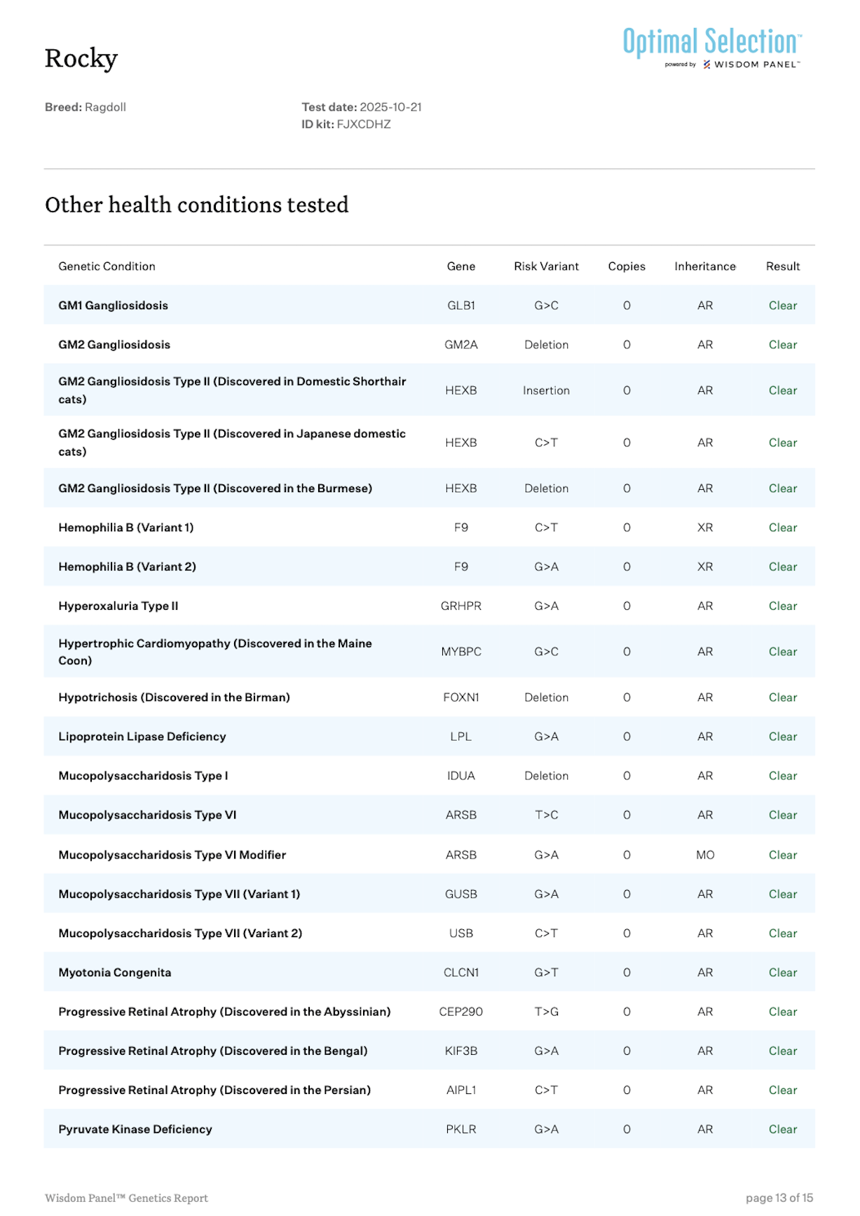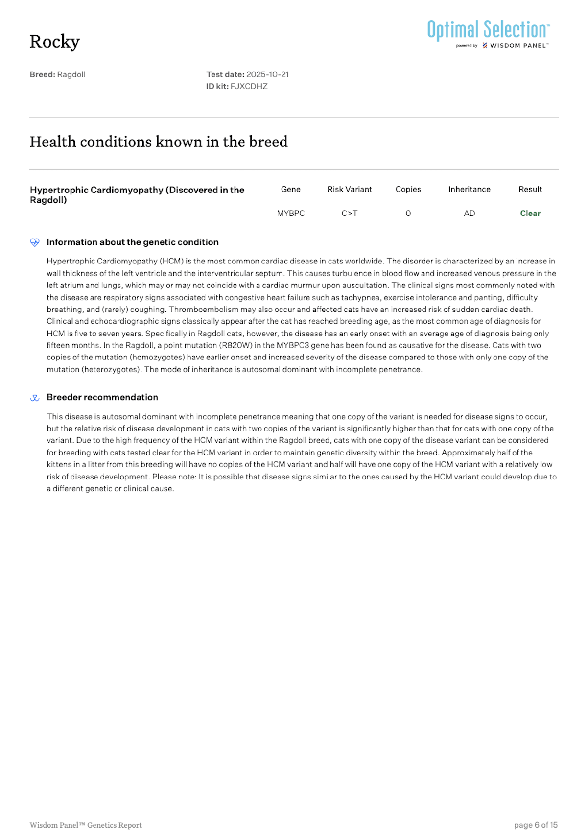 Rocky has tested negative for over 40 genetic conditions, including HCM + PKD.
